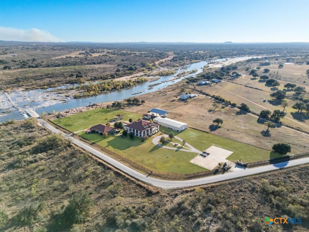 Set along the banks of the Llano River, this exceptional gated Hill Country estate offers privacy, space, and refined living on approximately 6 acres. The main residence features a thoughtfully designed open-concept layout with a chef's kitchen, spacious dining and living areas, two generous bedroom suites, and a private office. Soaring architectural details and deep wraparound covered porches create a seamless indoor-outdoor lifestyle with peaceful river views. Designed for comfort and versatility, the property also includes multiple private-entry guest suites, ideal for extended family or visitors, along with a detached shop and 4-car garage for storage, hobbies, or recreational use. Resort-style outdoor amenities include a sparkling pool and spa, firepit gathering area, and a fully equipped pool house. Located just minutes from the heart of Llano, this rare riverfront estate offers luxury living in a truly special setting.