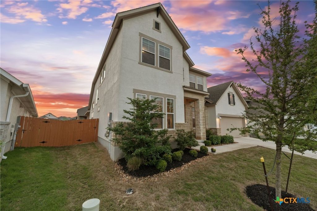 Positioned within the highly desirable Meyer Ranch master planned community, this exceptional 2024 David Weekley residence offers 3,106 square feet of refined living with a thoughtfully curated layout designed for both everyday comfort and elevated entertaining. Featuring 4 bedrooms and 3 bathrooms, the home includes a private secondary bedroom and full bath on the main level, along with a dedicated office ideal for work or study. At the heart of the home, the chef's kitchen makes a statement with custom sage green cabinetry, gas cooking, a designer vent hood, expansive island, and an oversized walk-in pantry. The space flows seamlessly into the main living area, where a striking wall of windows invites in natural light and frames serene backyard views. A fireplace adds warmth and architectural interest, while the separate dining space offers a refined setting for gatherings. The primary suite, located on the main level, serves as a true retreat with a spa-inspired bathroom designed for relaxation and function. Upstairs, two additional bedrooms, a full bath, and a spacious loft provide flexible living options for guests or additional entertaining space. The outdoor living experience is equally impressive, featuring an oversized covered patio complete with dual ceiling fans, gas stub for grilling, and a mature oak tree that anchors the backyard with natural beauty and shade. A 3-car tandem garage offers ample storage and versatility. Residents of Meyer Ranch enjoy access to premier amenities including a community hall, resort-style pool with splash pad, fitness center, and scenic walking and biking trails. A new on-site elementary school is projected for Fall 2027, further enhancing the community's long-term appeal.
